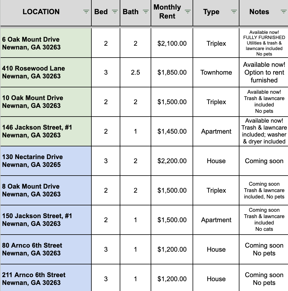 Available Rentals